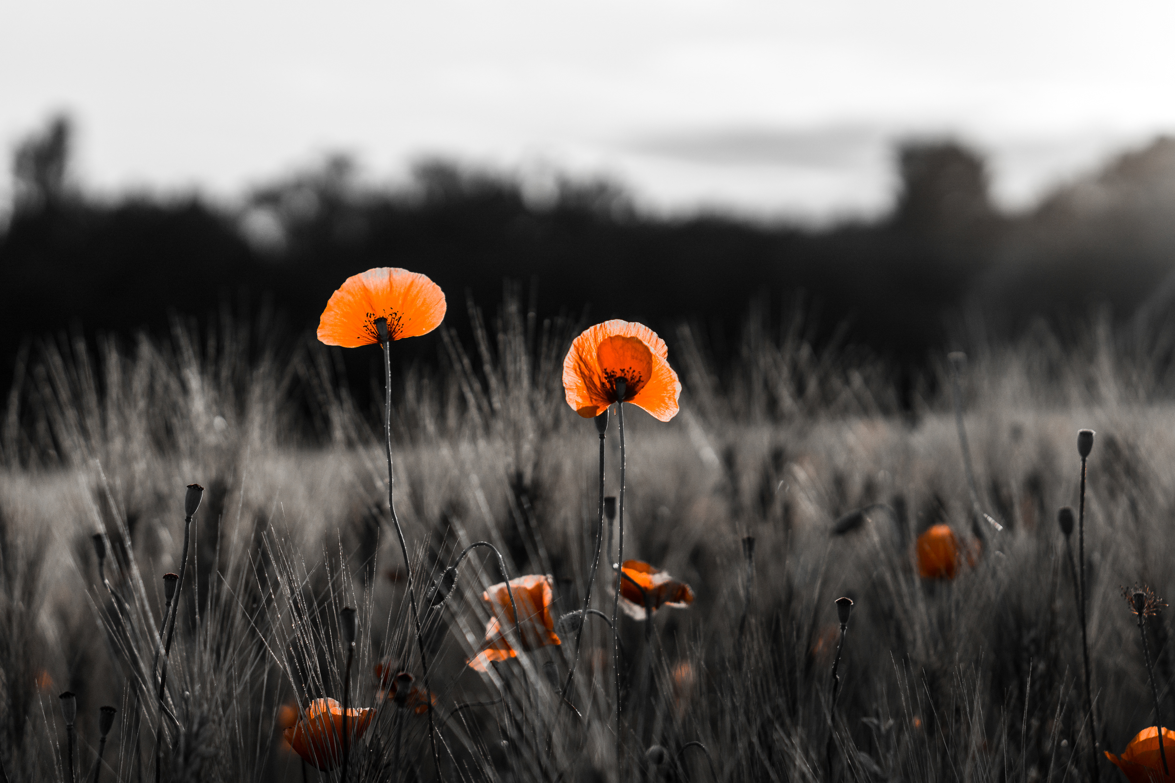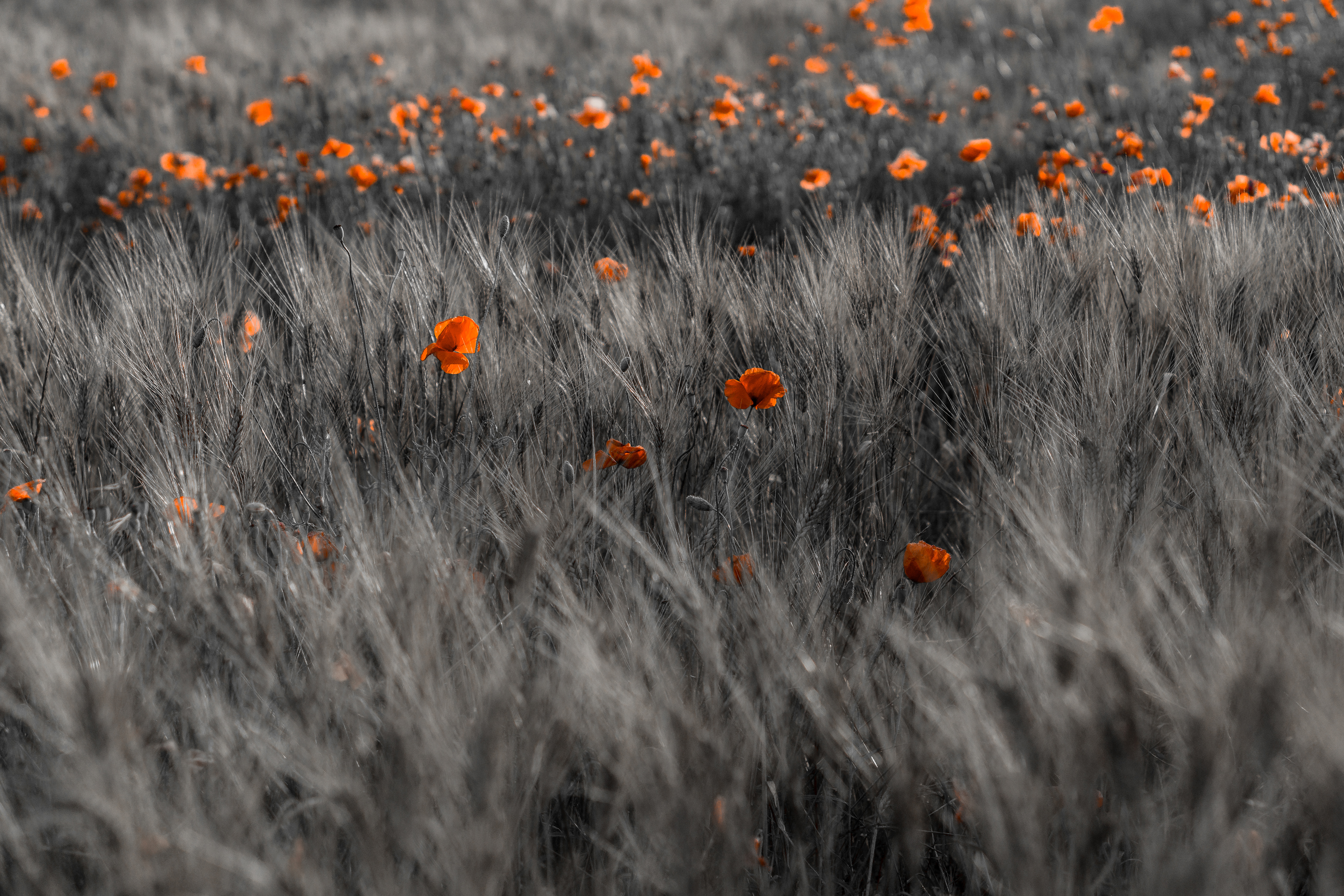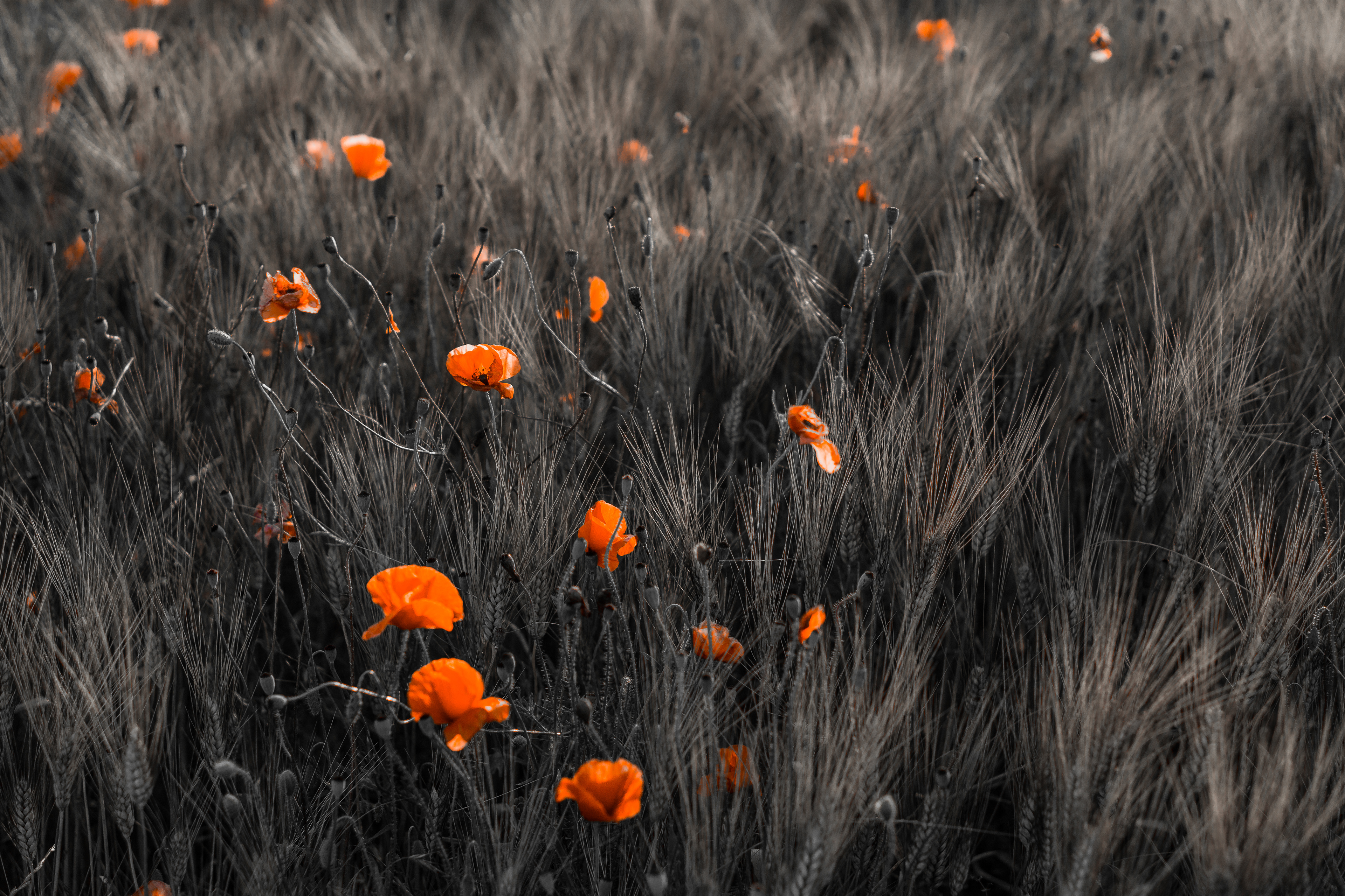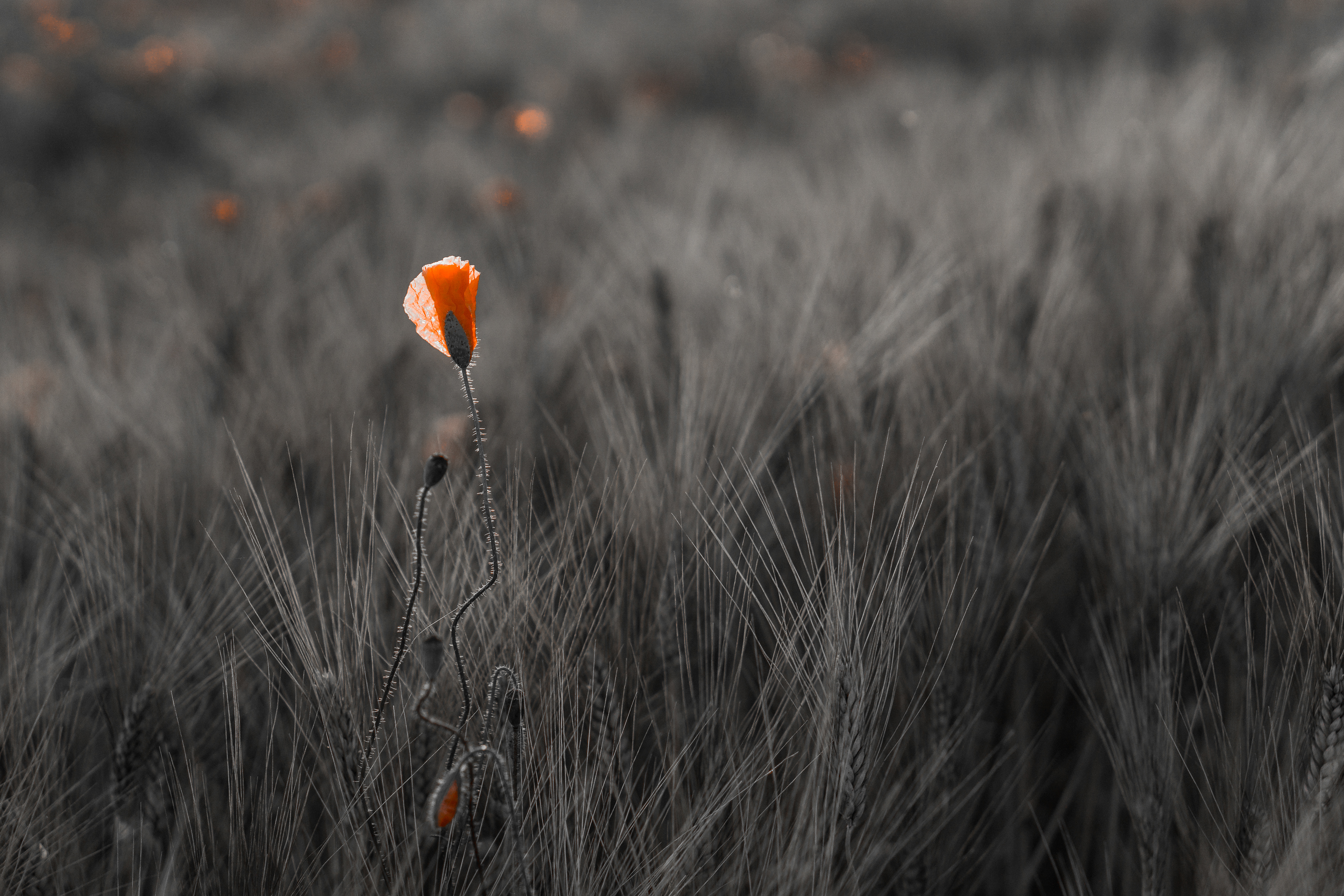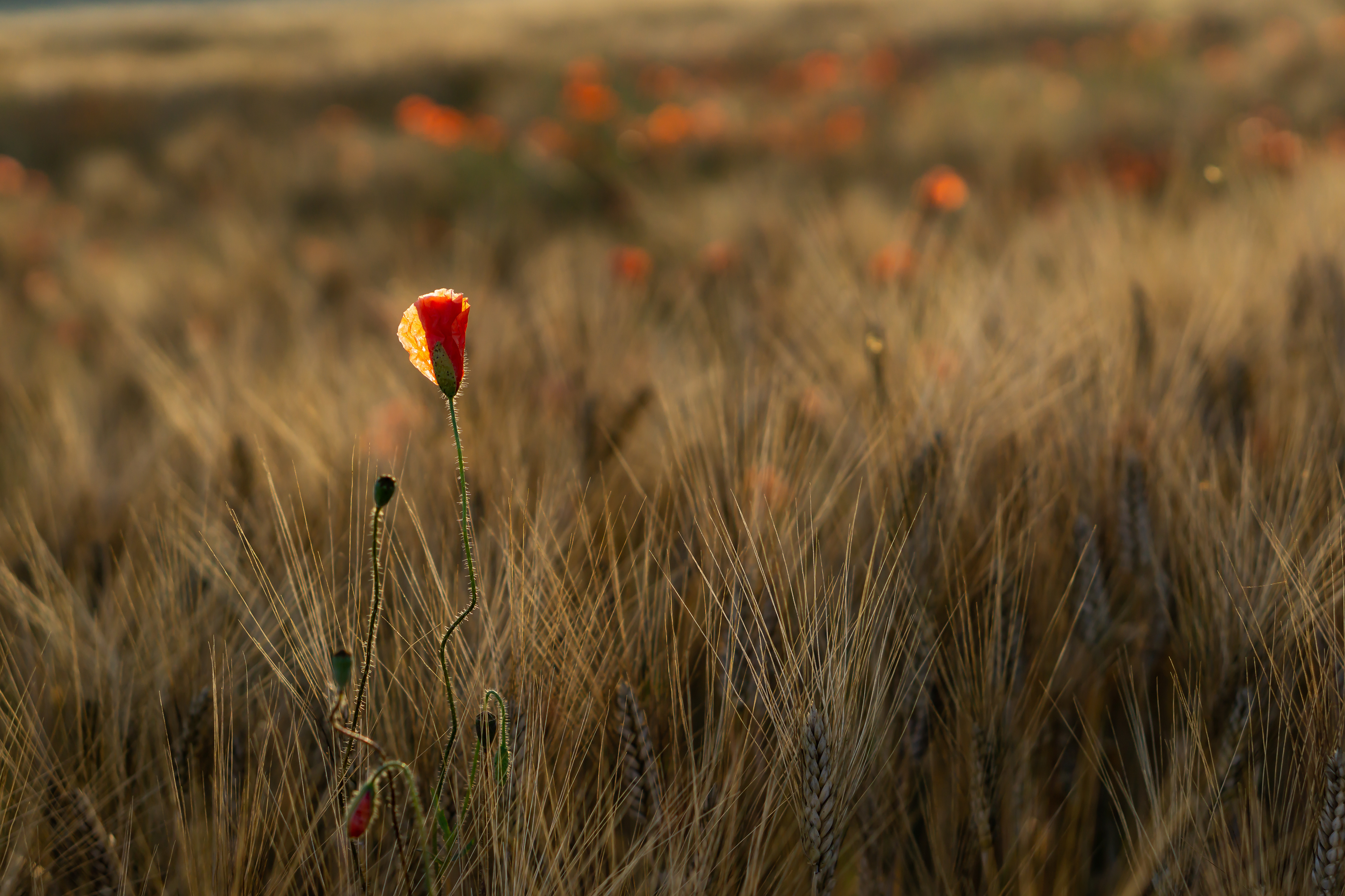 Coquelicots et champ de blé au coucher du soleil